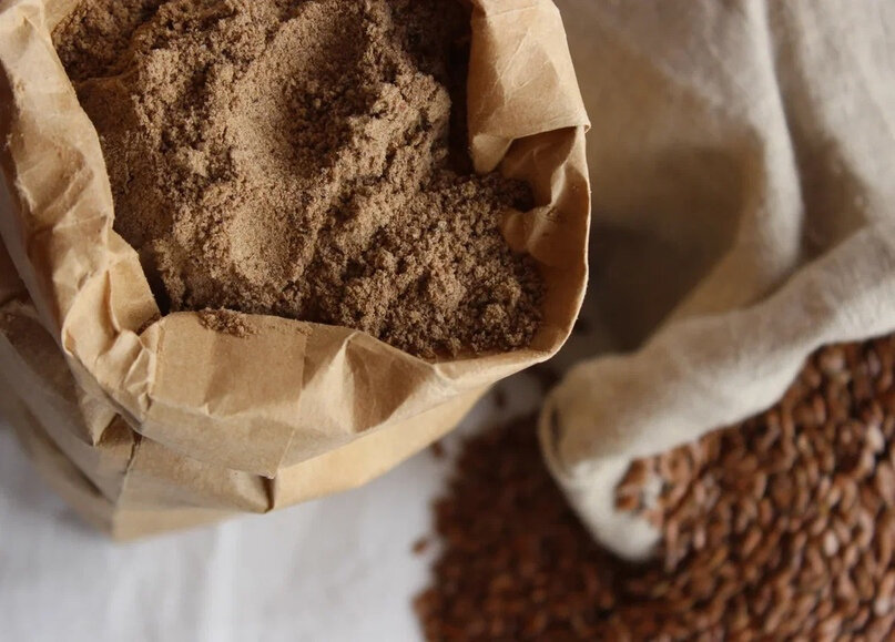 Льняная мука - не совсем обычный продукт, так как в наше время она является одним из немногих продуктов, в которых практически все "дары" природы сохранены в неизменном виде. Это польза в чистом виде! Что можно приготовить из льняной муки? Самые очевидные варианты блюд - каша, кисель, блины, хлеб - здесь льняная мука играет ключевую роль. Но ведь учитывая полезный состав муки из льна, её можно использовать в качестве питательной добавки в любом блюде: от салатов до тортов. Однако чистый вкус льна нравится не всем, поэтому важно не переборщить с этой полезной добавкой, сделав так, чтобы блюдо было и вкусным, и полезным. Льняная мука представляет собой коричневого цвета сыпучий порошок, в котором присутствуют вкрапления темного цвета (неразрушенные оболочки семени). Она имеет еле ощутимый приятный травянистый аромат и сладковатый, с легкой горчинкой, вкус. Продукт содержит в своем составе такие элементы: Витамины: А, В1, В2, В4, В5, В6, В9, К, Е, РР. Макроэлементы: калий, кальций, маг