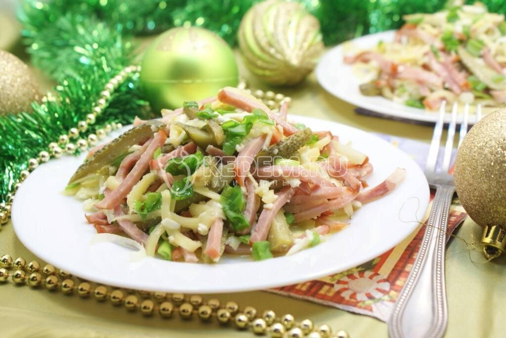 1. Остренький. Отличный вариант, который оставляет пикантное островитян послевкусие. Отлично подойдет на роль закуски и станет отличным украшением на новогоднем столе. Время приготовления 20 мин. 2. Изумрудный. Это легкий и нежный салат который довольно уместен на в новогоднюю ночь. Время приготовления 25 мин. 3. Сельдь под шубой. Классическое новогодний салат. Всегда будет актуален и уместен. Готовится быстро а главное вкусно. Так же выполняется слоями. Время приготовления 30 мин. 4. Грибная поляна. Этот салат отлично впишется на любом праздничном столе. Делается он слоями с добавлением куриного филе, картофеля, маринованных огурцов и завершается последний слой шампиньонами. Время приготовления 30 мин. 5. Снежный вечер. Салат отлично подойдет, что бы порадовать гостей пикантностью. Достигается она за счёт добавления консервированного ананаса, кусочков куриного филе и сыра. Время приготовления салата око