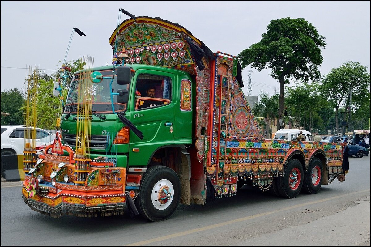 Жизнь дальнобойщика, даже в России, полна какой-то своеобразной романтики, о которой наши соотечественники даже сняли сериал. У водителей фур есть свое развитое сообщество, свои правила и свой, совершенно особый, образ жизни. Ведь машина в их мире занимает одну из ведущих ролей — неудивительно, в кабине грузовика многие дальнобойщики проводят больше времени, чем со своими детьми. Впрочем, это у нас так. А в далеком и жарком Пакистане все более экзотично, ведь местные фуры больше похожи не на машины, а на какие-то произведения искусства. Впрочем, ничего удивительного в этом нет. Водители тратят сотни и даже тысячи долларов на тюнинг своей "крошки": кабина изготавливается под заказ, а сам автомобиль украшается искусственными цветами, колокольчиками, цветными ленточками и даже ручной росписью, которая на все 100% будет уникальна. Причем нередко на тюнинг транспортного средства дальнобойщики тратят в разы больше денег, чем на любимую жену или обустройство собственного дома. Только вот поче