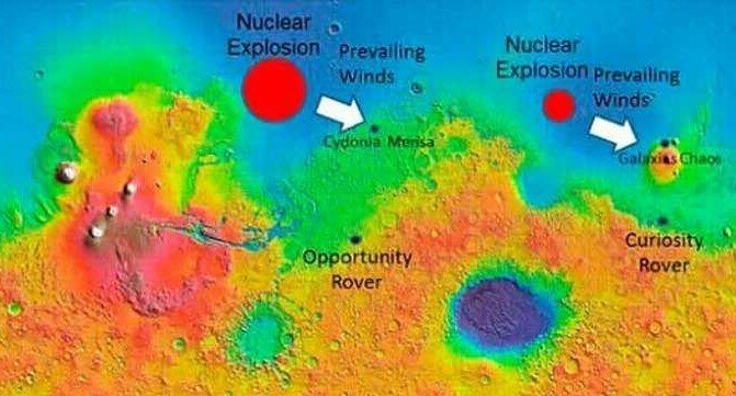 Многие вещи указывают на то, что на Марсе велись боевые действия, в ходе которых было применено ядерное оружие, которая стала причиной исчезновения всех живых существ на небесном теле.