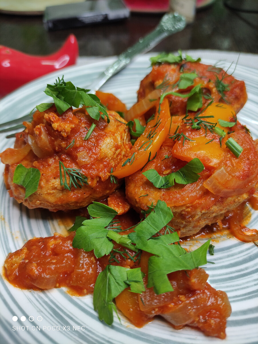 Тушить под крышкой до мягкости перца.