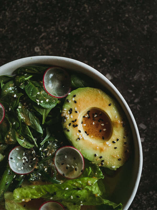 Салат: авокадо/шпинат/эдамаме/малина-имбирь
