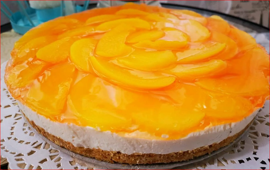 Чизкейк с персиками и творогом без выпечки