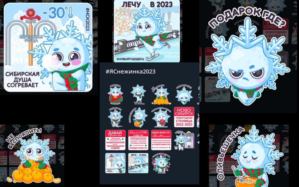 К 2023 году в Новосибирске сделали новогодние стикеры со Снежинкой. В 2022 году Новосибирск получил статус Новогодней столицы России. Чтобы жители города могли передать свои чувства в сибирском стиле, художники нарисовали несколько стикеров в Telegram. Их главный герой — Снежинка. Перед Новым годом Снежинка суетится... ...ест мандарины ...и оливье ...но не забывает гулять и заниматься спортом. Сюжеты мест, где успела побывать Снежинка, связаны с городскими достопримечательностями: Березовая роща, Бугринский мост, Академгородок, композиция с аистами в Первомайском районе. Добавить стикеры можно в Telegram-канале «Новосибирск – новогодняя столица России». Домик самой Снежинки открылся на Михайловской набережной 10 декабря. Зайти к ней в гости можно каждый день с 11:00 до 21:00.