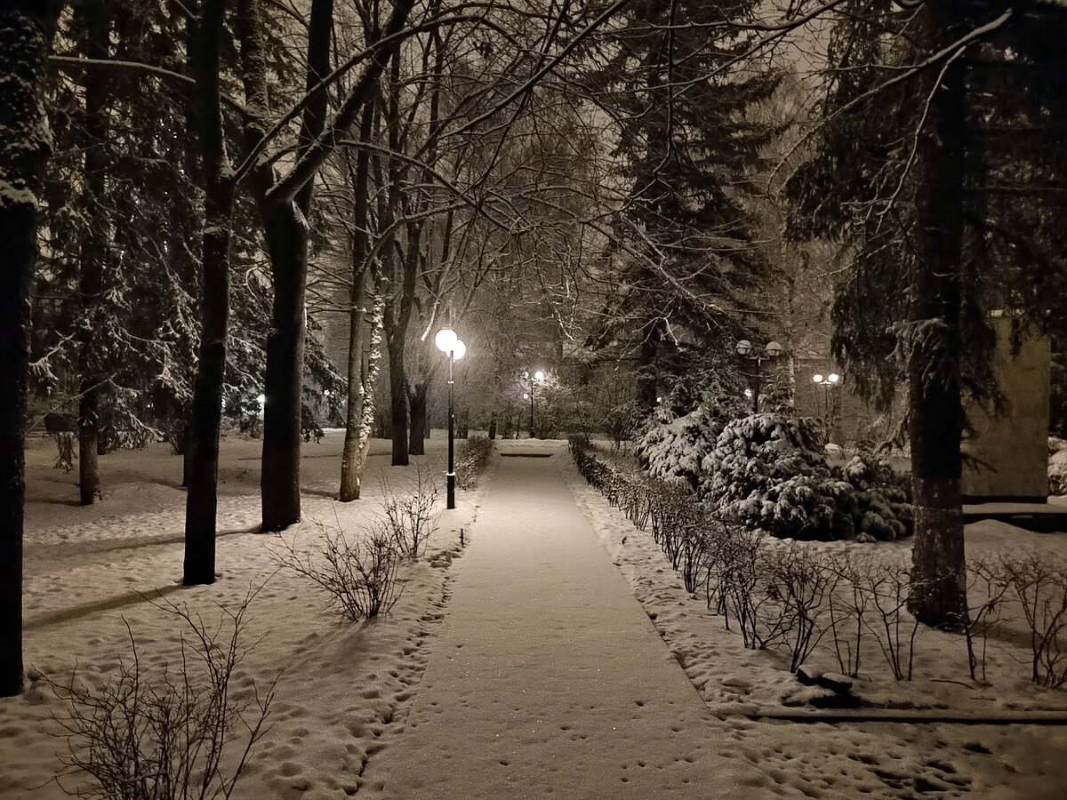 Был в Москве в командировке, когда выпал снег. Вечером вышел, ак там как в сказке Жалко что на сегодняшний день уже все растаяло.. и красота превратилось в лужи хлопающие под ногами