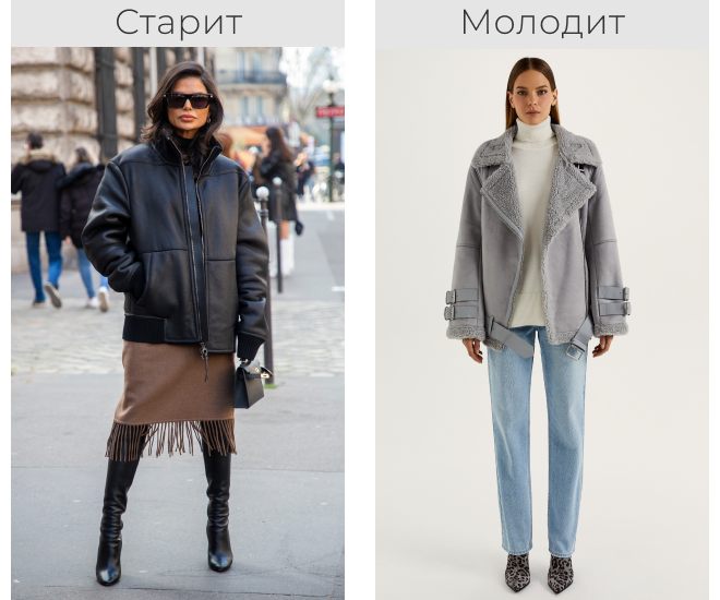 Я работаю шопинг-редактором и внимательно слежу за тенденциями стритстайла. Сегодня расскажу об актуальных трендах с точки зрения восприятия возраста, а вы сделаете вывод: пробовать их или нет. Погнали! Дубленка Мой выбор: дубленка Love Republic, цена: 7 699 руб. Объемная, коричневая «папина» дубленка сейчас актуальна, но она не дает омолаживающего эффекта. Чего не скажешь о классическом «авиаторе» в светлом оттенке — этот легко сбросит десяток лет. Узнайте, Как отличить модную дубленку 2022 от бабушкиного тулупа: 6 признаков. Куртка Мой выбор: куртка Finn Flare, цена: 4 790 руб. Короткая куртка-пуховик с объемными рукавами смотрится нелепо, уродует силуэт, молодости и стати точно не прибавляет. Рекомендую выбрать модель длиной до середины бедра, к ней никаких вопросов. Вот Модные женские куртки в 2022 году: 150 фото трендовых моделей. Пуловер Мой выбор: джемпер Zarina, цена: 3 599 руб. Свободный пуловер крупной вязки смотрится мешковато, поэтому силуэт в нем не кажется точеным. Он с