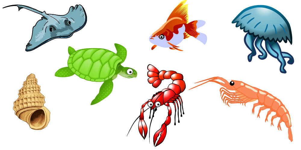 На картинке найдите медузу, ската и креветку - проверка внимательности