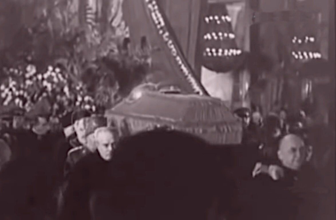 Фильм запечатлел, что закрытый гроб с прибитой к нему фуражкой в верхней части имел что-то вроде стеклянного купола, так что голова и плечи Сталина оставались доступными для обзора. Для чего это было сделано, письменных свидетельств не осталось. Вероятнее всего, руководители страны хотели дать возможность народу видеть вождя как можно дольше, на протяжении всей похоронной процессии.