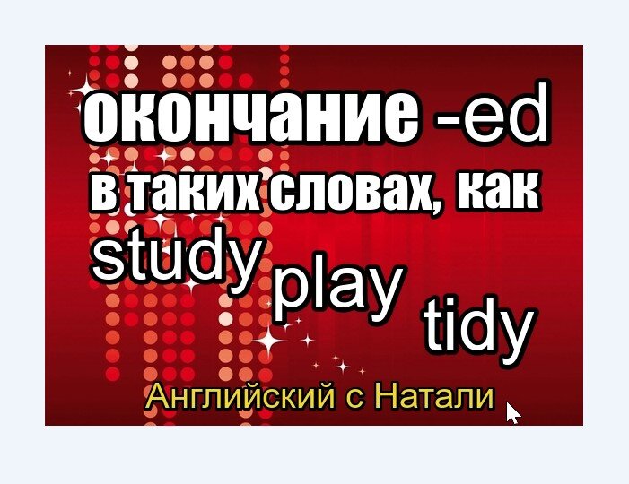 В предыдущей статье мы говорили об окончании прошедшего времени -ed для неправильных глаголов. Часто информацией по присоединению владеет большинство. О том, что буква "y" при присоединении -ed меняется на ie, знают почти все. Пример : study - studied, tidy-tidied Есть такое правило. Однако, правила этого правила многие забывают, а при наступлении нужного момента в глазах - непонимание и не желание вникнуть в ситуацию. Ведь нам говорили, что "y" меняется на "ie"! Да, говорили, но не договорили.... Меняется "y" на "ie" в случае, если перед "Y".... ВНИМАНИЕ!! стоит СОГЛАСНАЯ буква. В study согласная перед "y" есть. А в слове