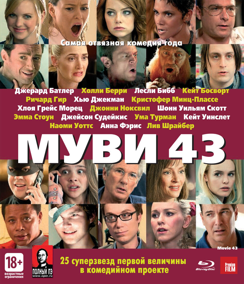 "Муви 43", на мой взгляд, самый недооцененный фильм современности! Все дело в том, что картина была настолько прогрессивной для своего времени, а я напомню фильм вышел в 2013 году, что люди попросту оказались к ней не готовы. 3 победы в номинациях на Золотую малину, как худший фильм, худший сценарий, худший режиссер. Рейтинг на Кинопоиск 5.0, на IMDb 4.2. Если смотреть на подобный послужной список, то кажется что это один из худших фильм за всю историю кино, но на мой взгляд, это не так! Как я уже сказал, "Муви 43" слишком опередил свое время, и как это не часто, но случается, оказалось что это не фильм плохой, а люди глупые и просто не смогли по достоинству оценить шедевр. "Муви 43" - это альманах разных скетчей, и каждый скетч снимал отдельный режиссер. Если мы посмотрим, кто эти режиссеры, то мы увидим, что это люди которые определяют весь юмор современности. Один из скетчей снял Джеймс Ганн - создатель "Стражи Галактики", человек за которого бьются две крупнейшие студии в Голливу