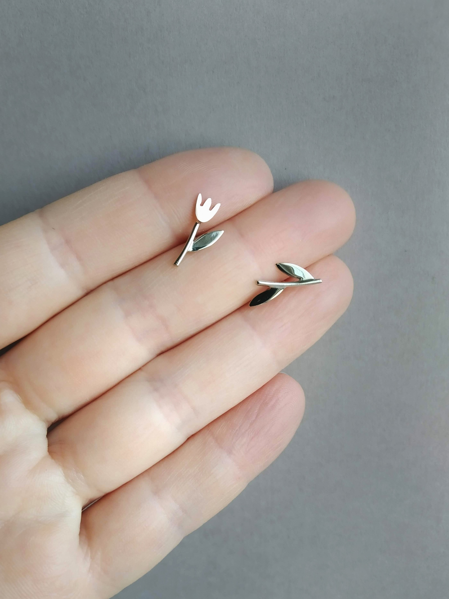 Вообще, у автора проекта много украшений, от которых так и веет грядущей весной, но нам больше всего приглянулись серьги-пуссеты в виде маленьких тюльпанов. Отдельно нравится, что несмотря на то, что цветы выполнены из сплава меди, никеля и цинка, сами «гвоздики» серёг — та их часть, которая проникает в мочку уха — выполнена из серебра. Это значит, что они подойдут аллергикам и не будут окисляться.