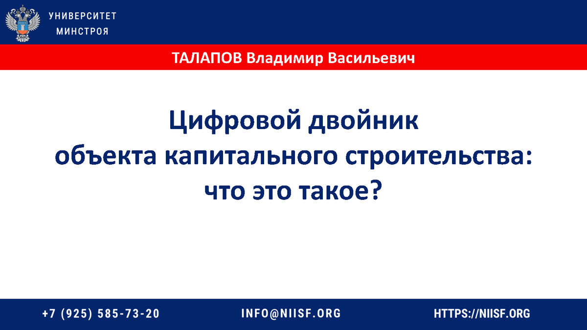 Тема выступления: Цифровой двойник строительного объекта: что это такое?