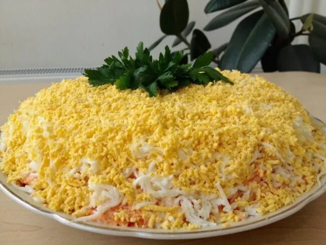 Здравствуйте, дорогие друзья! С вами Надежда! Салат Мимоза - очень популярный и любимый многими. Для его приготовления в основном используют консервированную рыбу сайру или горбушу. Также используют крабовые палочки, потому что, как известно, крабовые палочки состоят из рыбного мяса, т. е. в них нет мяса крабов. Такой салат отлично подойдет на праздничный стол. Продукты для салата самые доступные и их всегда можно приобрести без труда. Салат Мимоза классический Продукты: Пошаговый рецепт: Приятного аппетита! Салат Мимоза со сливочным маслом Сливочное масло придаст знакомому салату иной вкус и текстуру. Ингредиенты: Приступим: Приятного аппетита! Еще больше рецептов смотрите на моем блоге по ссылке: