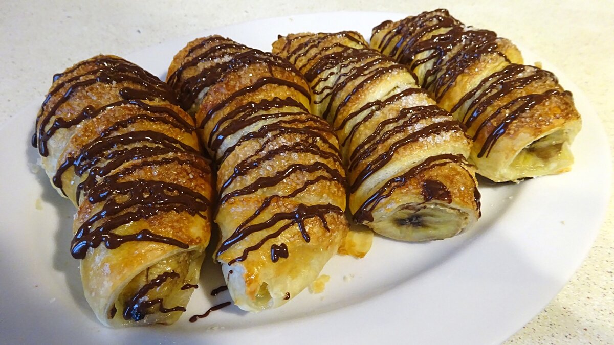 СЛОЁННОЕ ТЕСТО С БАНАНОМ И ШОКОЛАДОМ. Очень простой и вкусный рецепт