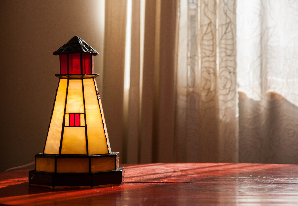 Это большой витражный маяк. Большой и сложный. Получил я на него заказ через Ярмарку Мастеров. До этого я уже делал витражный маяк, но он был попроще и с одним источником освещения.