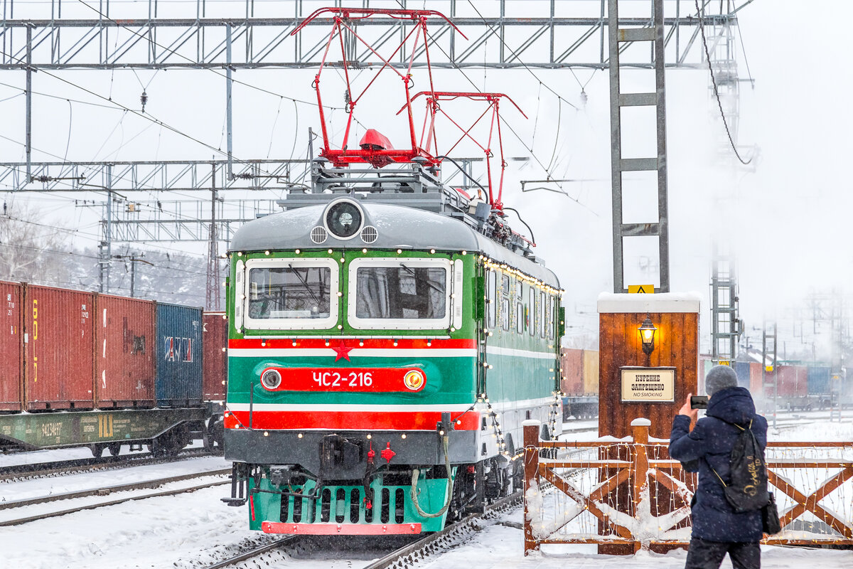 В прошедшее воскресение я совершил путешествие на ретропоезде по маршруту Екатеринбург - Верхняя Пышма Музей. Этот проект прорабатывался несколько лет, пробный запуск был еще в сентябре 2019 года, но вмешались известные обстоятельства и только в декабре 2022 года все заработало в полную силу. 2 декабря был пресс-тур, а с 3 декабря поезд доступен всем желающим, ходит он по выходным и праздничным дням, билеты можно купить на сайте РЖД. Стоимость первых "промо" рейсов составляет 600 рублей с человека, в дальнейшем цена будет равна 999 рублям. Вкратце как все устроено. Поезд состоит из шести вагонов: 3 общих, вагон-ресторан, один люкс и один VIP. Я купил билет в обычный общий вагон - это купейный вагон с купе рассчитанным на шесть человек. В вагоне-ресторане можно купить места за столиком и ехать там. До двух остальных вагонов я не добрался. (листайте фото) Поезд стартует в 9.35 на электротяге во главе с "Чебурашкой" ЧС2-216 (на заглавном фото), доезжает до станции Шувакиш, где делает 40-