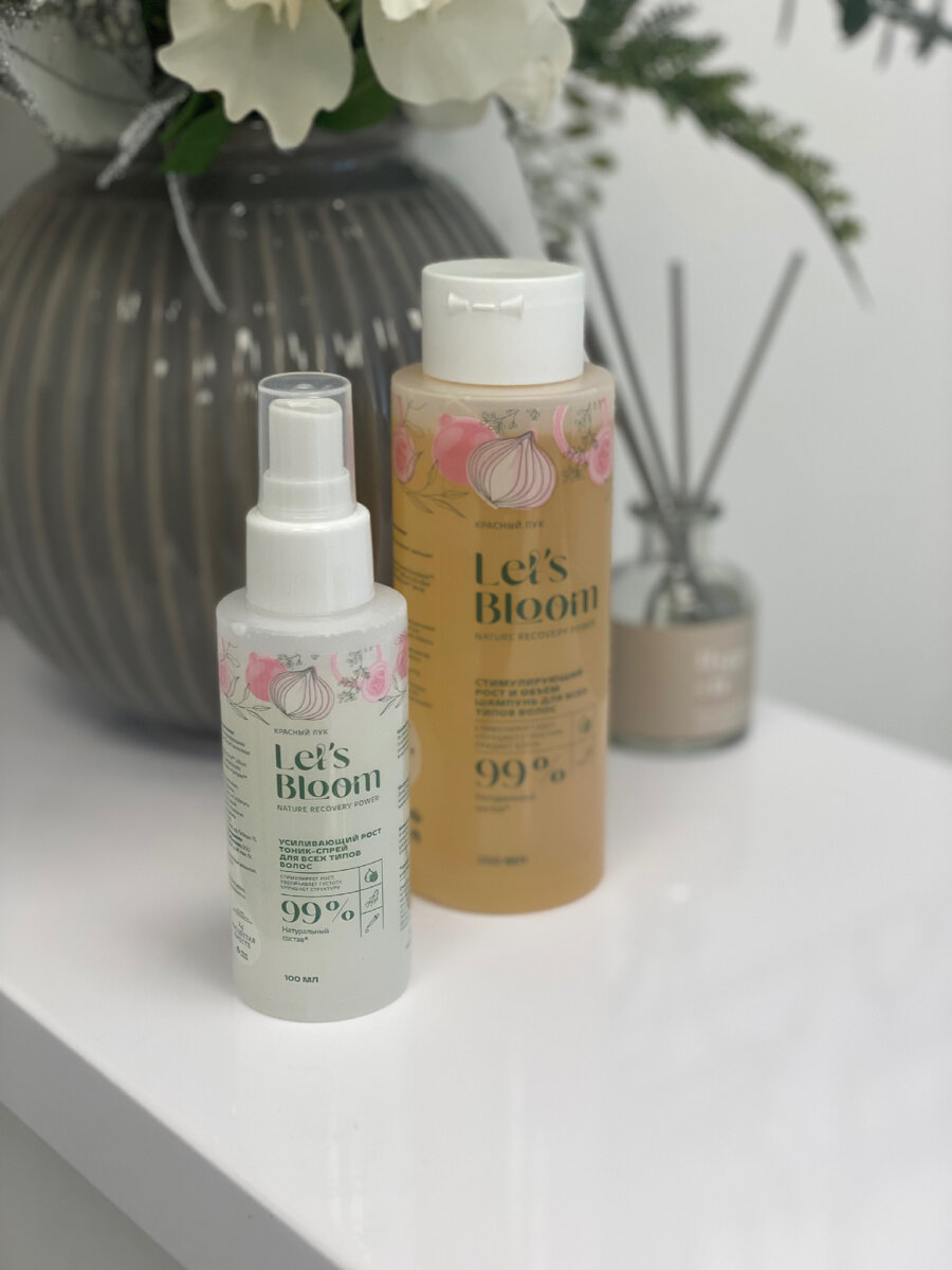 Основная проблема с которой обращаются мои клиенты - выпадение волос. И многих женщин, да и мужчин это очень нервирует. И знаете, большинство клиентов решают эту проблему либо приемом витаминов, или отстриганием длины, но почему-то забывают о других более приятных методах борьбы с этой проблемой - шампуни и спреи. Let`s Bloom - бренд натуральной косметики. Составы средств на 99% состоят из натуральных компонентов. В составе средств только натуральные компоненты, которые поддерживают и стимулируют естественные функции кожи. Я и сама столкнулась с такой проблемой, именно поэтому решила попробовать линейку против выпадения волос, эти средства предотвращают выпадение и стимулируют рост волос. В составе шампуня красный перец и красный лук, именно эти компоненты усиливают приток крови к корням, укрепляют луковицы волос. Если вдруг вас испугал красный лук и вы задумались по поводу аромата, то не переживайте у шампуня аромат больше перца, а у спрея даже более цветочный. Давайте более подро