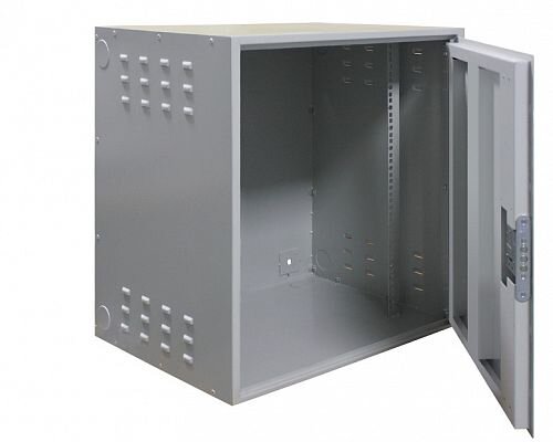 Примечание: некоторые серверные антивандальные шкафы оснащены дверями с отверстиями — перфорацией. Благодаря этому воздух циркулирует внутри корпуса, что обеспечивает устройствам охлаждение. Впрочем, стоит помнить, что такого «холода» достаточно той технике, что не отличается высоким уровнем тепловыделения. Мы говорим о свитчах, маршрутизаторах и прочих подобных устройствах. А вот если в антивандальный ящик поставить более мощное оборудование, например, сервер, мощный бесперебойник и т. п., тогда нужна активная система охлаждения — кулеры.