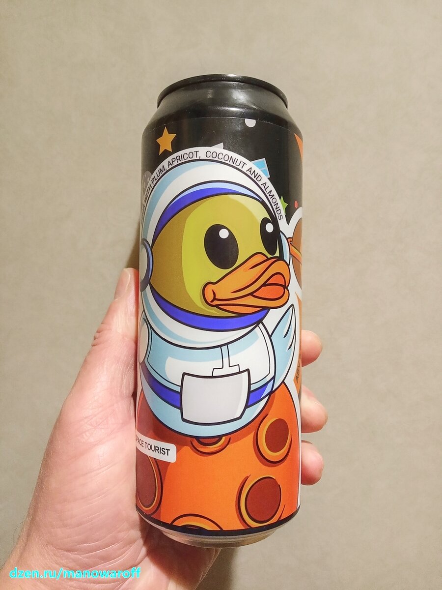 Из названия статьи можно сделать вывод, что сегодня будет обзор пива питерской пивоварни Magic Mess, которая любит уточек с котиками. И этот вывод будет верным - сегодня попробуем пиво Space Tourist. Это снова кисляк, но на этот раз с не банальными ингредиентами: Космический туризм в поисках разумной жизни, пусть и с добродетельной миссией - дело утомительное. Для поднятия оптимизма предлагаем вам воспользоваться проверенным средством - побаловать себя вкусненьким. Сегодня на десерт сладкий сливово-абрикосовый sour ale с нотками кокоса и миндаля - идеально для дозаправки! Такого мне точно пробовать не доводилось. Сорт прошлогодний, сентябрьский. Моя же банка из октябрьской партии, а вскрыл я ее менее, чем через два месяца после розлива. Срок хранения составляет год (в холодильнике). ТТХ: Пиво довольно плотное, хотя до смузи ему далеко. После налива появляется немного пены, но она быстро опадает. Аромат сладковатый, что-то выделить из него затруднительно - разве что легкие оттенки абри
