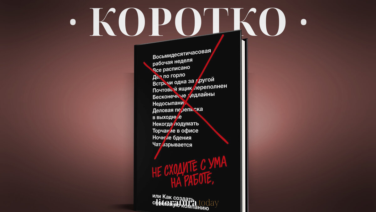 👇️ Восьмичасовая рабочая неделя, все расписано, дел по горло, некогда подумать, недосыпы. Может хватит? Редакция портала собрала для вас несколько идей из книги «Не сходите с ума на работе или как создать спокойную компанию» Джейсона Фрайда и Дэвида Хайнемайера Хенссона