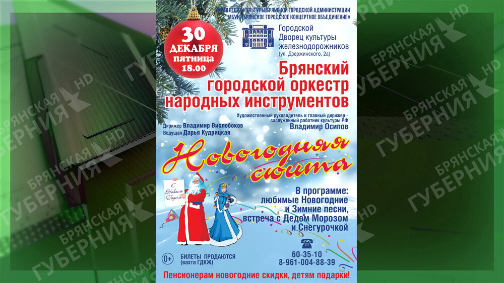 МБУК Брянское городское концертное объединение. 0+ ФОТО: МБУК Брянское городское концертное объединение Брянцев приглашают на концерт «Новогодняя сюита»