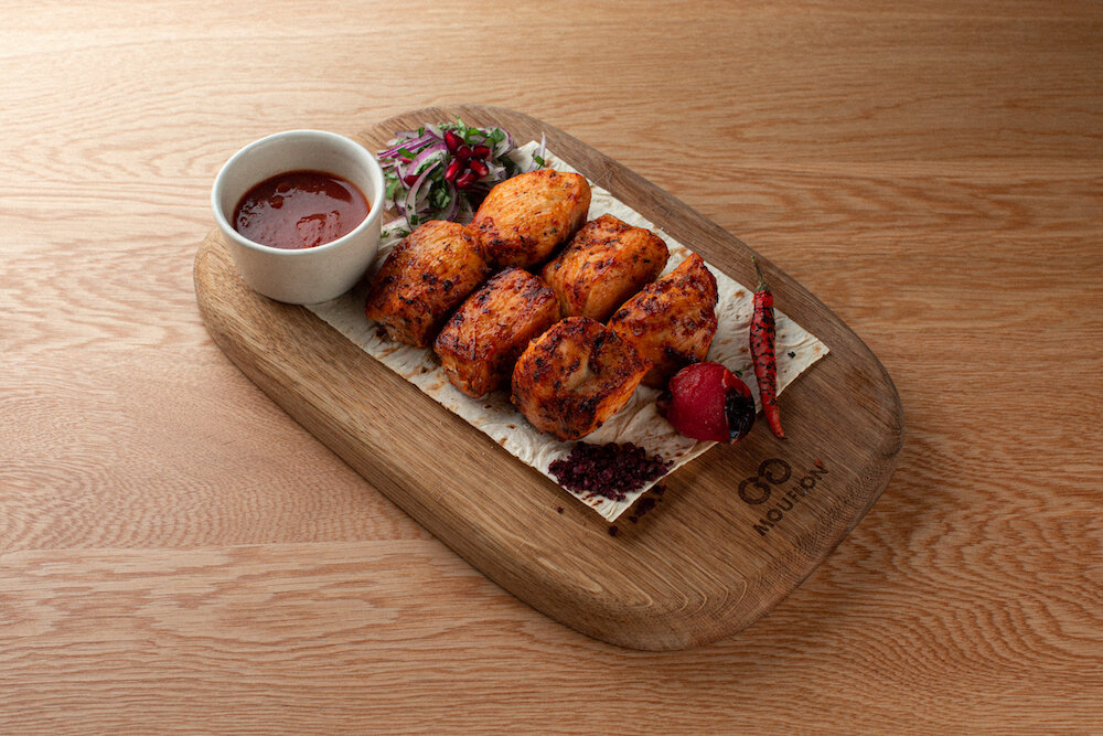 - Шашлык из куриной грудки (750 руб.) и свиных ребер (870 руб.)