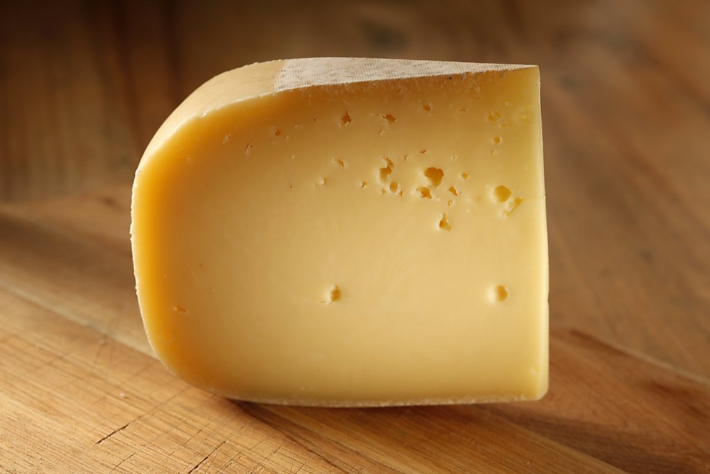 Прежде, чем покупать сыр, нужно разобраться в основных его особенностях. Он достаточно твердый, имеет небольшое количество глазков по сравнению с другими видами сыров. Цвет продукта – желтый. Оттенок может меняться немного в процессе созревания. Молодой сыр не очень яркий, выдержанный имеет насыщенный желтый оттенок. В некоторых случаях мякоть может быть даже карамельного цвета. Также можно увидеть в середине головки сыра микроскопические кристаллики. Это означает, что в составе большое количество аминокислот тирозин.