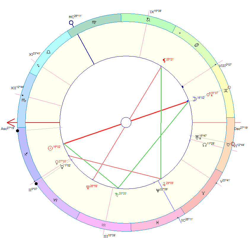 Завтра утром мы все проснемся, а на небе такое!!! Видите? Луна стоит прямо на ретроградном Марсе, а напротив Солнце! Ох и веселый год будет у тех, кто родился 8 декабря! У вас же завтра Соляр (гороскоп на год закладывается)! Что нам дает такая картина? Полнолуние - это само по себе время очень неспокойное. Энергии в пространстве скапливается много, вокруг все буквально бурлит либо от событий, либо от избытка чувств, эмоций. Люди сами не свои, суетятся, торопятся. Традиционно полнолуние считается потенциально опасным в плане аварийности. А теперь добавьте ко всему этому Марс - планету горячую, буйную и готовую взорваться каждый момент. Получится такой нервный день, когда все будут носиться как ошпаренные, бегать, кричать, что-то доказывать, спорить и т.д. Плохо? А вот и не страшно! Если внимательно приглядеться к карте, можно увидеть, что эта красная оппозиция из трех планет (Луны, Солнца и Марса) благополучно разрешается зелеными аспектами на Сатурн - планету труда и дисциплины. Это зн