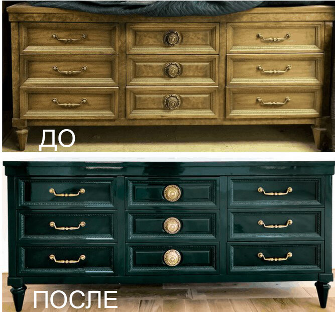 Приветствую вас, мои творческие друзья!🥰 Скажите, какую мебель вы больше любите: матовую или глянцевую. Пожалуйста, напишите в комментариях только одно слово: «МАТОВУЮ» или «ГЛЯНЦЕВУЮ». Хочу проверить, совпадает ли ваше мнение с моим. Я же вижу, что какое-то время назад глянцевая мебель стала нас раздражать, напоминая о советском прошлом. Поэтому последние годы глянцевая мебель стала незаслуженно забыта. 😯 В моду вошла матовая мебель, максимум с легким сатиновым блеском. Но посмотрите этот мастер-класс от американского декоратора Кайлы, и вы снова влюбитесь в глянцевую мебель. 💚💚💚 Вот рассказ Кайлы: Я наткнулась на этот красивый комод с невероятной латунной фурнитурой в одном из комиссионных магазинов. 💚💚💚 Как только я его увидела, я поняла, что хочу его подремонтировать и покрасить в красивый цвет. 💚💚💚 Я понимала, что это будет глянец, но долго не могла решить, какой это будет цвет. Я давно мечтала о темной глянцевой мебели, но не хотела черный, потому что ассоциации с