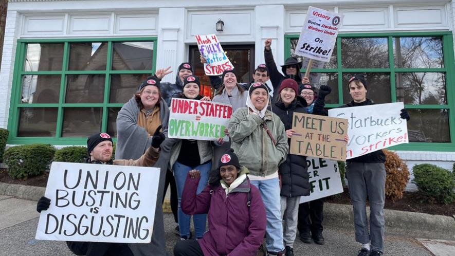 Работники Starbucks, организованные Starbucks Workers United, провели пикеты у более чем 100 торговых точек компании по всей территории США. Они протестуют против нежелания корпорации садиться с рабочими за стол переговоров и укомплектовывать магазины необходимым персоналом. Бастующие рабочие перед заведением Starbucks в Массачусетсе (Фото: Boston Starbucks Workers United) 17 ноября, работники, объединённые в организацию Starbucks Workers United (SBWU), провели крупнейшую на сегодняшний день однодневную забастовку. Тысячи работников выставили пикеты напротив более чем 100 кофеен по всей территории США. Рабочие решили провести забастовку в «День красных чашек», важный день для маркетинга Starbucks, поскольку в этот день предоставляются специальные скидки в честь предстоящих праздников. «Я работаю в Starbucks уже 7 лет и задержался в нём надолго по многим причинам, – сказал Джек Сальвуччи, менеджер смены в одной из кофеен Starbucks в Бостоне. – Но за всё это время было так много дней, к