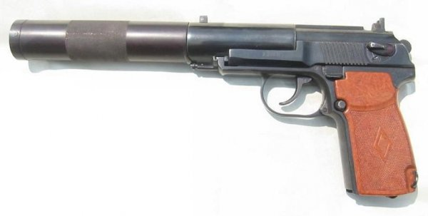В 1967 году на вооружение групп специального назначения КГБ, «Альфа» и «Вымпел», а так же армейской разведки был принят пистолет, оснащенный интегрированным и съемным глушителем — ПБ («пистолет бесшумный», индекс 6П9) созданный А.А. Дерягиным в ЦНИИ Точмаш основан на конструкции ПМ. Однако пистолет Дерягина является самостоятельной системой в следствии многочисленных изменений и переработок механизмов оружия. Оружие использует штатные патроны 9×18. Так как затвор-кожух сильно укорочен, возвратная пружина размещена вертикально в рукоятке, взаимодействуя через качающийся двухплечный рычаг с затвором-кожухом. На удлиненном стволе расположена расширительная камера в которой находится рулон металлической сетки, снижающей температуру пороховых газов, отводимых через отверстия выполненные по нарезам ствола. К передней части расширительной камеры резьбовым соединением крепится съемная часть глушителя, в котором размещен сепаратор с шайбами, имеющими разные углы наклона, разделяющими и перенапр