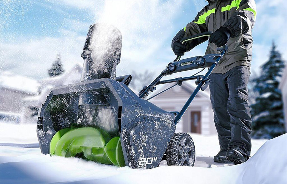 Для небольших садовых участков подойдут недорогие электрические или аккумуляторные модели средней мощности, как, например, снегоуборщик Greenworks 40V. Модель оснащена надежным бесщеточным двигателем и имеет глубину захвата 20 см, что позволяет очищать дорожки, веранды и даже расчищать небольшие сугробы из свежевыпавшего снега.