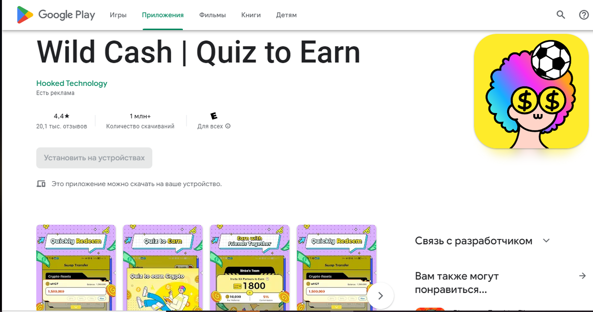 Зарабатываем на новой игре Wild Cash формата quiz-to-earn Сегодня вышел новый лаунчпад на Binance — Hooked. Это разработчик новой игры Wild Cash с поддержкой Binance и Sequoia. Поскольку сейчас Binance монополист, то есть смысл "потыкать" в проекты, которые выходят на лаунчпаде. Как зарабатывать? Каждый день нужно проходить простые викторинки в приложении Wild Cash и получать токены. Их можно будет обменять на BUSD и вывести на любой кошелек. 1. Переходим по ссылке https://hsacw.xyz/r/2XCGVC и скачиваем приложение (доступно только для Android). Если нет андроид, то скачиваем эмулятор на компьютер и затем устанавливаем приложение Wild Cash. 2. Проходим первый квест. Получаем токены. 3. Далее идем в Crypto Capm и там проходим квесты за которые так же зарабатываем токены. 4. В конце переходим в раздел майнинга и можно купить оборудование, чтобы майнить еще больше монеток на пассиве. КАК ВЫВОДИТЬ ТОКЕН? Прямо в приложении можно обменять от 800 000 HGT (минимум) 1:1 на токен uHGT (разл