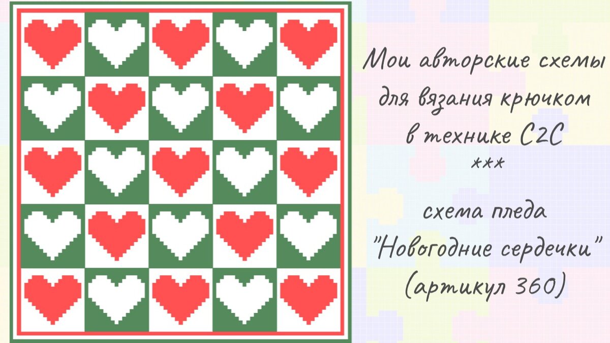 Схема для вязания пледа "Новогодние сердечки" в технике С2С (артикул 360).