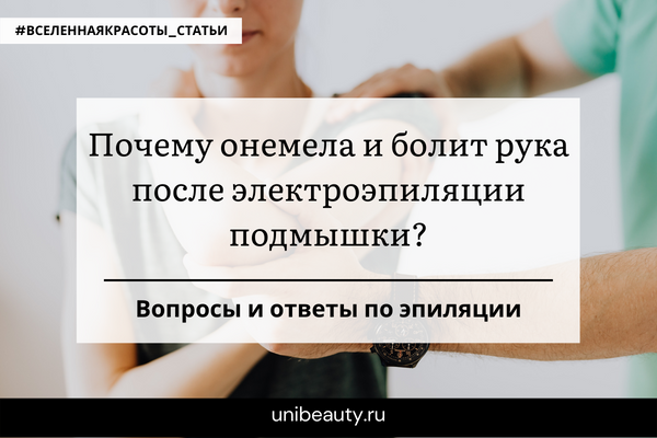 Онемение рук – один из тревожных симптомов, который свидетельствует о повреждении чувствительных нервов конечности или нарушении кровообращения. Важно понимать, что само по себе онемение не является заболеванием, это один из признаков патологии. Причем симптом далеко не специфический. Онемением может сопровождаться огромное количество болезней. Чаще всего оно возникает при: спазме мышц шейно-воротниковой области, атеросклерозе, травмах. Причины онемения руки и при чём тут эпиляция Существует и множество других причин возникновения этого неприятного симптома. Онемение может возникать и в результате «бытовых» ситуаций, например, после длительного ношения достаточно тяжелой сумки или рюкзака на одном плече. Оно же может быть последствием стрессов или психоэмоциональных нагрузок, особенно у лиц с чувствительной нервной системой. Есть ли связь онемения с электроэпиляцией Появление онемения в результате повреждения нерва в ходе электроэпиляции абсолютно исключено. Причин невозможности такого