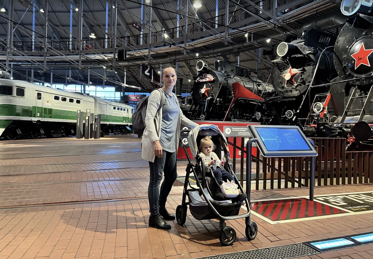 Частый вопрос: можно ли в Музей железных дорог России с детской коляской? Наш ответ: можно! Рассказываем, что сделано в музее для удобства мам и малышей. Вход в музейный комплекс Вход в Музей железных дорог России осуществляется с Библиотечного переулка. Мощёная дорога ведёт к воротам, от них до широких входных дверей проложен пандус с минимальным наклоном, что позволяет легко закатить коляску внутрь. Входные турникеты оборудованы двустворчатыми дверями. Контролёр открывает их мамам с колясками сразу после предъявления входного билета. Гуляем по музею Музей железных дорог России – один из крупнейших музеев России. Площадь музейного комплекса – почти 60 тыс. кв.м. Здесь достаточно свободного места для манёвра. Чтобы спланировать оптимальный маршрут, возьмите у администратора бесплатную карту музея или воспользуйтесь онлайн-версией. В некоторые вагоны можно заглянуть, поднявшись по лестнице. Сюда коляска уже не заедет – её можно оставить рядом с вагоном и зайти внутрь с ребёнком на руках