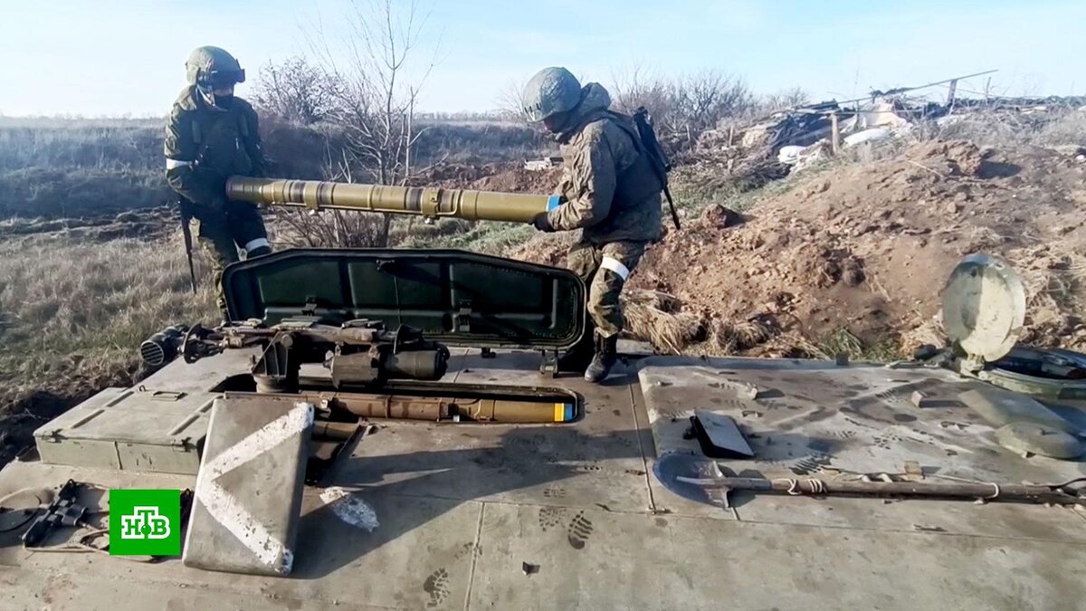[ Смотреть видео на сайте НТВ ] Российские военные отбили атаку украинских вооруженных формирований в поселке Опытное в ДНР. На этом направлении сейчас идут особенно тяжелые бои. Вражеские войска пытаются вернуть себе утраченные позиции и перебрасывают на этот участок дополнительные силы и бронетехнику. Танки и бронетранспортеры противника российские войска нейтрализуют с помощью отечественных комплексов «Штурм». Противотанковые системы со сверхзвуковыми ракетами используют в армии с середины 70-х. Тогда они впервые поступили на вооружение. С тех пор «Штурм» несколько раз модернизировали, его оснастили лазерно-лучевой системой управления и тепловизорами, и сегодня это один из современных образцов вооружения. Южнее Донецка артиллерийская бригада Восточного военного округа противостоит украинской бронетехнике. По танкам и БМП стреляют из «Штурмов», противотанковых комплексов еще советской разработки. Управляемая ракета способна пробить любую броню с расстояния до трех километров. Из-за с