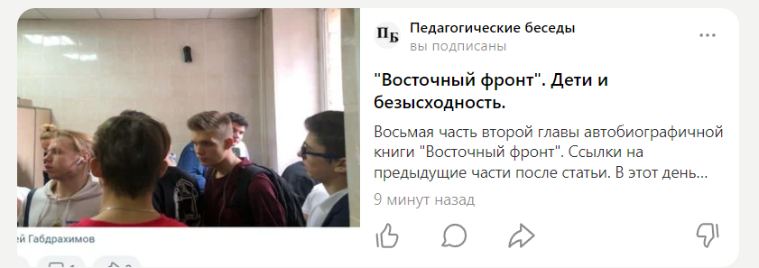 В этой части книги "Восточный фронт" "широкими мазками" описана средняя по сложности методика погружения в транс (случай с хулиганом Колей). И укоренение в психике подростка страха перед учителем.