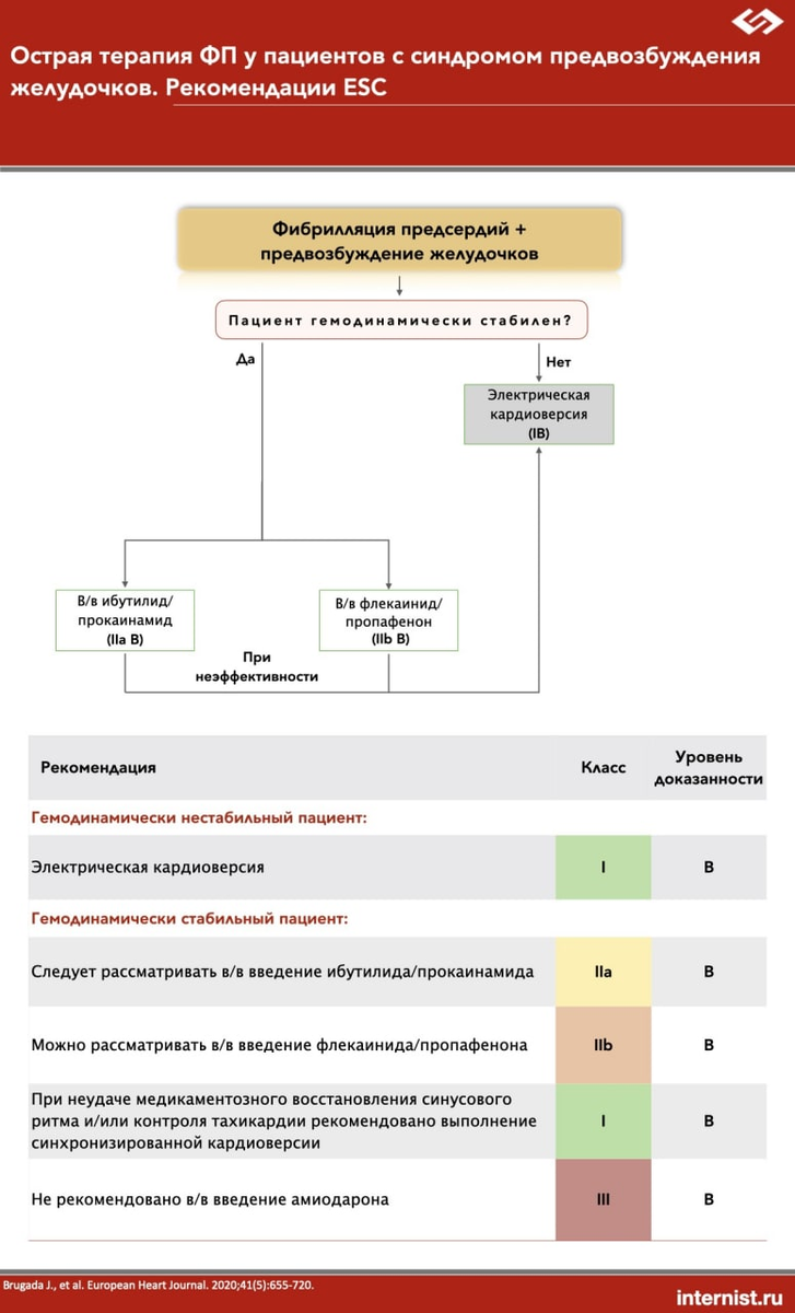 Острая терапия ФП у пациентов с синдромом предвозбуждения желудочков. Рекомендации ESC