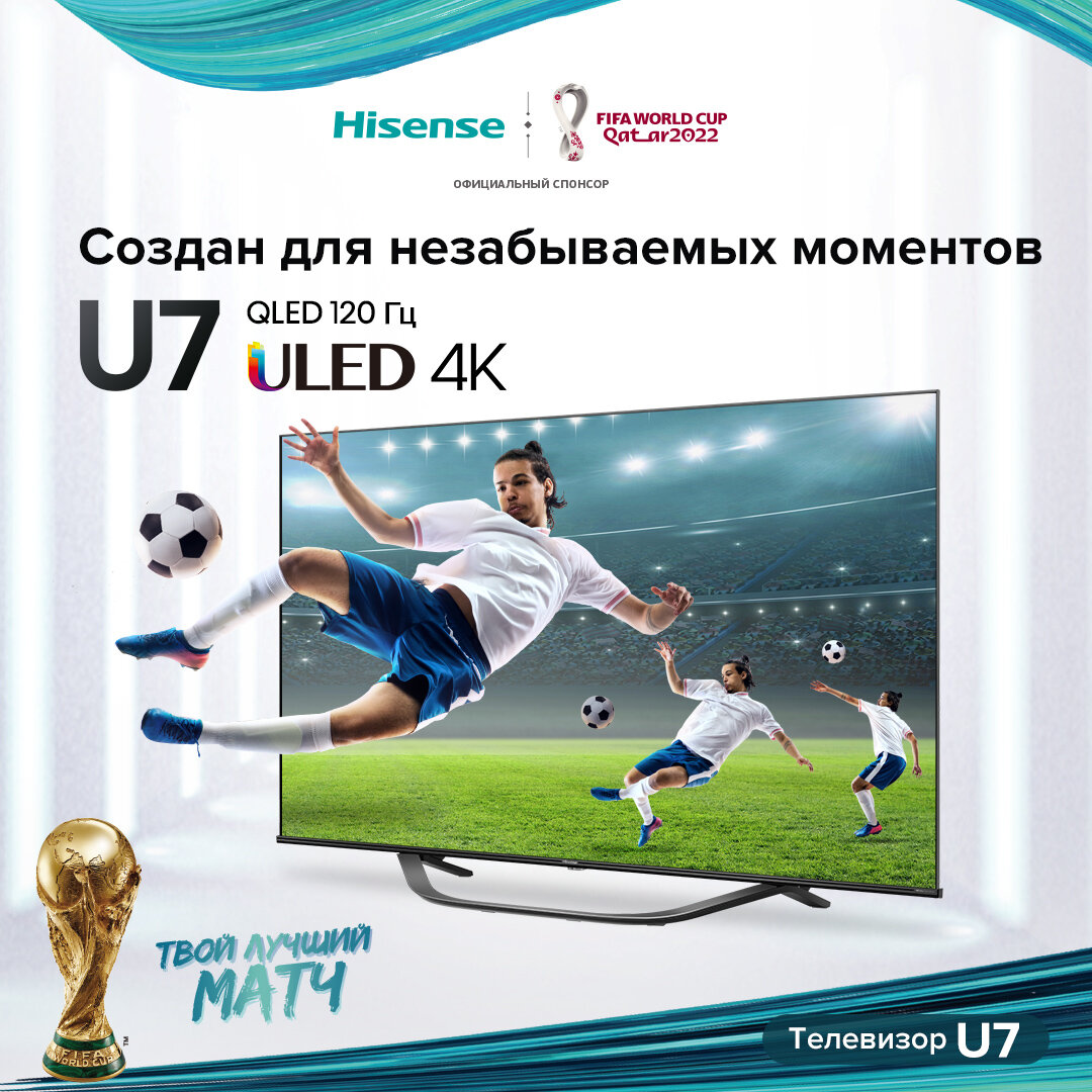 Для фанатов футбола нет более приятного времяпрепровождения чем поход на стадион, где можно болеть за команды и чувствовать атмосферу, царящую на трибунах. К сожалению, не всегда получается попасть на заветный матч и не каждый из нас может отправиться в Катар на чемпионат мира по футболу. Но благодаря современным технологиям, мы можем получить максимум удовольствия от просмотра матчей, не выходя из дома. И главное тут - правильно выбрать телевизор. Для многих из нас есть разница – смотреть футбол вживую или по телевизору. Ощущение единения с гигантским стадионом, заполненным ликующей толпой, с которой ты сливаешься в единый организм, теперь можно прочувствовать, оставаясь дома и наблюдая за игрой с лучших ракурсов по телевизору. Честно, я скептически относился к этой идее, пока судьба не свела меня с Hisense U7HQ QLED 120 Гц. Компания Hisense является официальным спонсором Чемпионата мира по футболу FIFA в Катаре 2022™ и под слоганом «Твой лучший матч» представила новинки, в том числе
