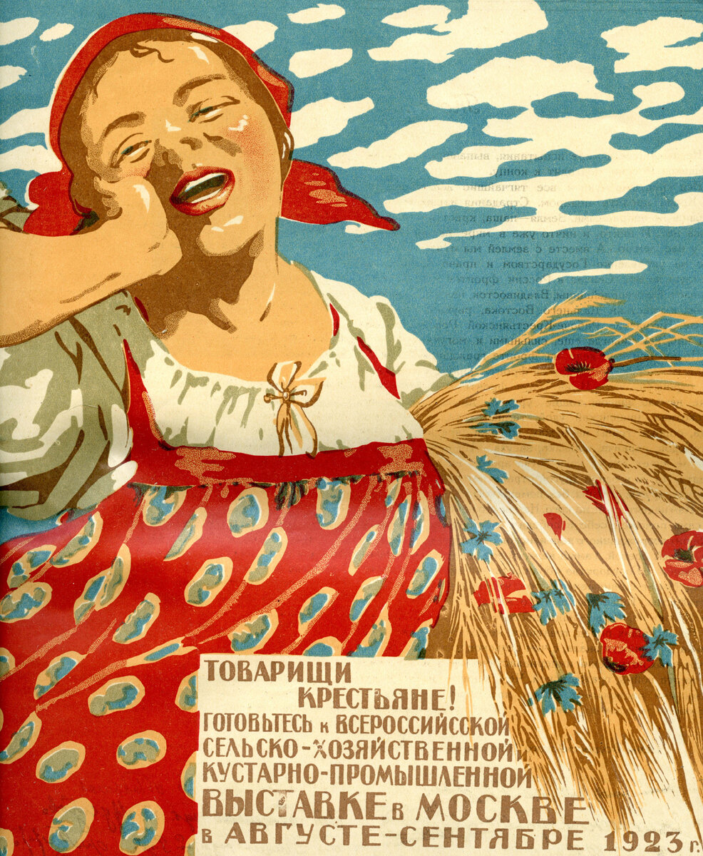 Но Советская власть сразу обратила внимание не столько на просветительские, сколько на агитационно-пропагандистские возможности сельскохозяйственных выставок. Так, несмотря на официально заявленную цель первой Всероссийской Сельскохозяйственной и кустарно-промышленной Выставки (1923): «показать основные достижения свои в области восстановления, укрепления и развития сельского хозяйства на новых началах и под руководством Рабоче-крестьянской власти»[x], на деле Выставка стала мощнейшим орудием агитации.