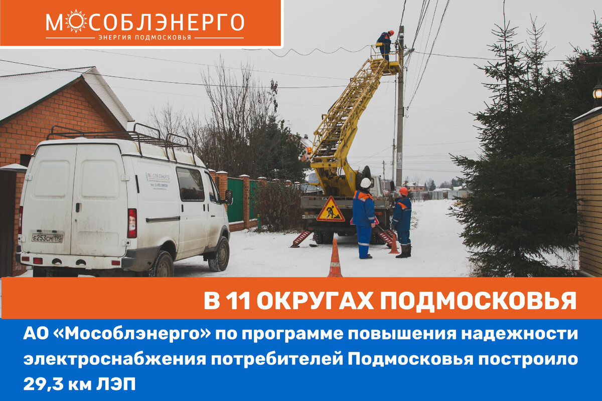 АО «Мособлэнерго» в рамках программы повышения надежности электроснабжения потребителей Подмосковья построило в 2022 году 29,3 км ЛЭП. Из них 5.3 км (100% от плана) воздушных и 24 км (90% от плана) кабельных линий электропередачи. Завершить работы полностью планируется до конца декабря. Мероприятия по строительству ЛЭП выполнялись в 11 округах Подмосковья. В этих районах было зарегистрировано большое количество обращений от потребителей. Учитывались жалобы на качество электроснабжения и, исходя из них, формировался объем работ. В список округов, в которых были построены ЛЭП, вошли: Раменский, Щелково, Клин, Кашира, Мытищи, Егорьевск, Красногорск, Орехово-Зуевский, Люберцы, Ленинский, Одинцовский. Наибольший объем работ в текущем году в рамках программы был выполнен в Раменском городском округе – там построен 21 км ЛЭП. Работы проводились в поселке Речицы на улицах Центральной и Новая Слобода, в поселках Родники и Вялки. Также АО «Мособлэнерго» проложило кабельную линию от подстанции «Д
