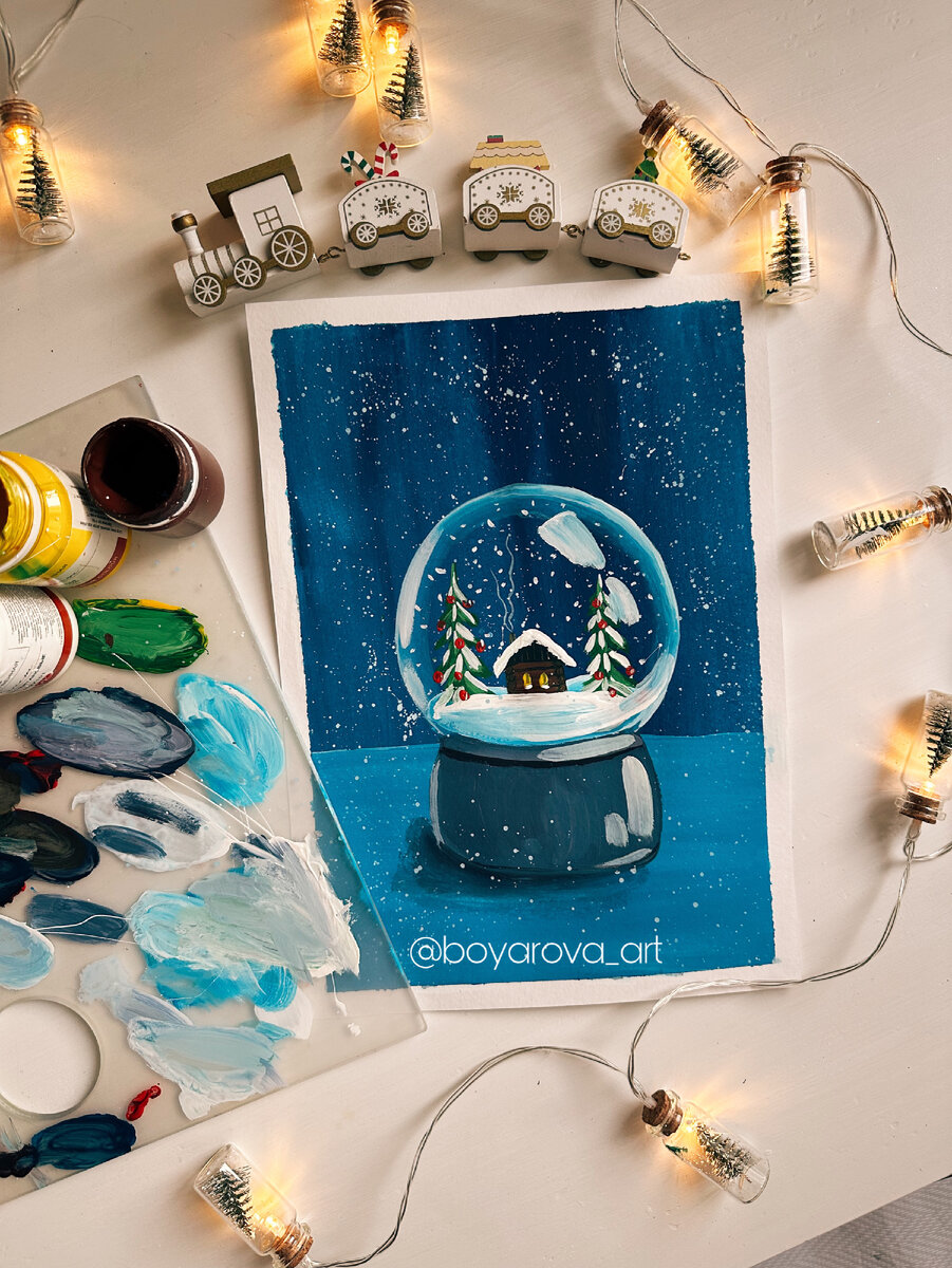 👩🏻🎨 Всех профессиональных мастеров и любителей рисования поздравляю 🥳🎊 Сегодня для маленьких художников я подготовила подробный новогодний урок «Снежный шар». На уроке мы научимся передавать объем прозрачному шару и подставке. Будем учиться рисовать без карандаша и предварительного рисунка, а сразу красками, будем учиться смешивать краски и пользоваться палитрой. Стоимость урока 300 рублей. Урок будет доступен вам всегда. Для детей 5+ Для покупки вы можете мне написать в ВК или Телеграм (активные ссылки есть в шапке профиля)