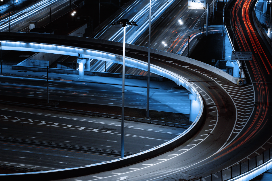 Для построения такого маршрута участок будет предварительно разбит на три части: путь от начальной точки до автомагистрали, путь по автомагистралям, путь от автомагистрали до конечной точки. Стоит отметить, что этот путь не всегда будет кратчайшим.