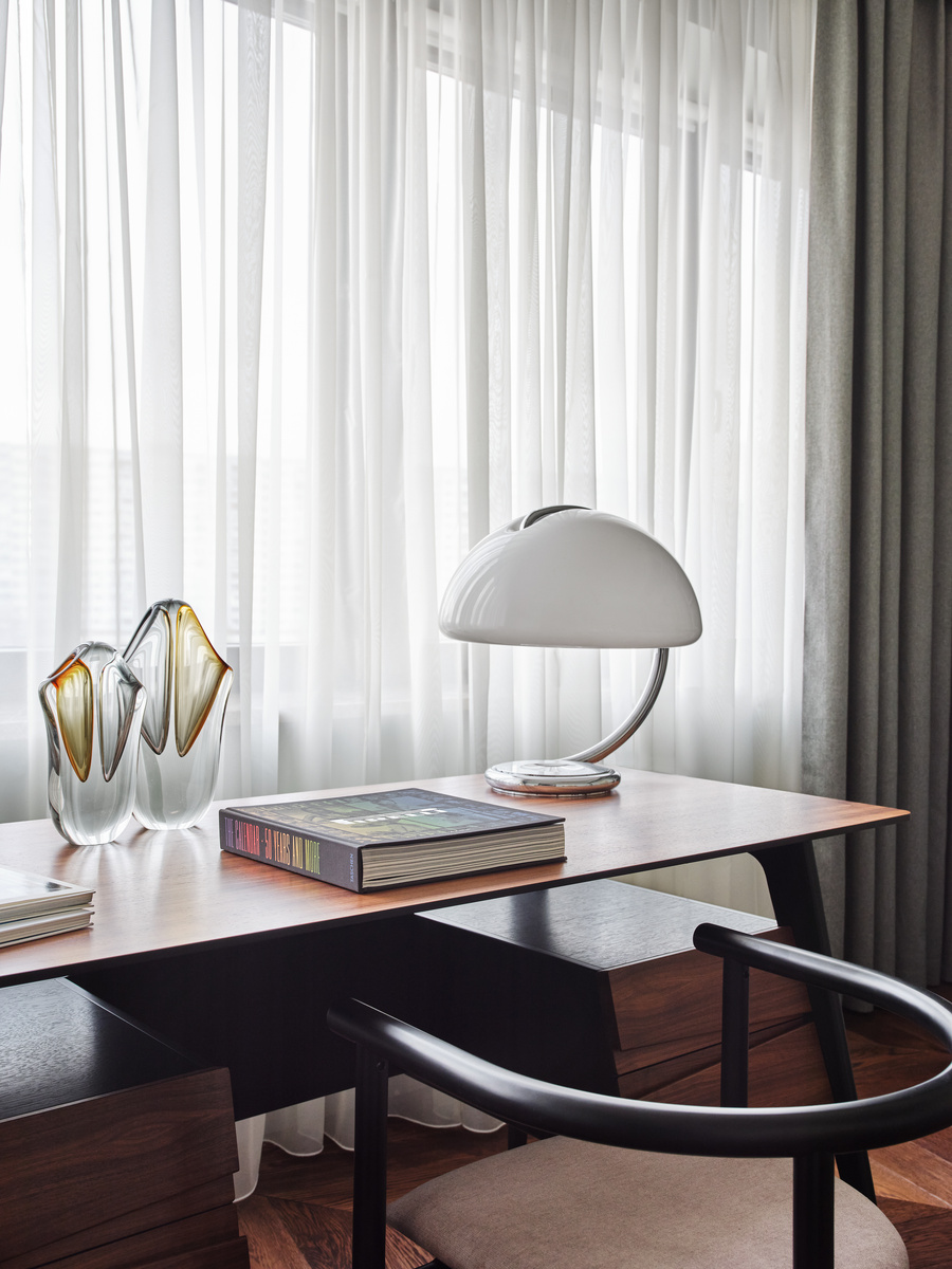 Например, пространство квартиры в Москве украсила винтажная лампа Viva Vintage 60-х годов, бережно доставленная из Италии. Ее чудесно дополняют и винтажные вазы, создавая красивую общую картину восприятия. В интерьере гостиной внимание привлекает деревянная консоль, расписанная под камень, изготовленная в 70-х годах. В этих же годах в Италии была изготовлена роскошная люстра, которая идеально дополнила интерьер в нашем проекте. Конечно, декор, не означает винтаж. В качестве элементов, украшающих пространство вашего дома, могут выступать и современное искусство и предметы мебели. Главное, подобрать оформление интерьера со вкусом, не нарушая стилистику, а выразительно подчеркнуть ее.