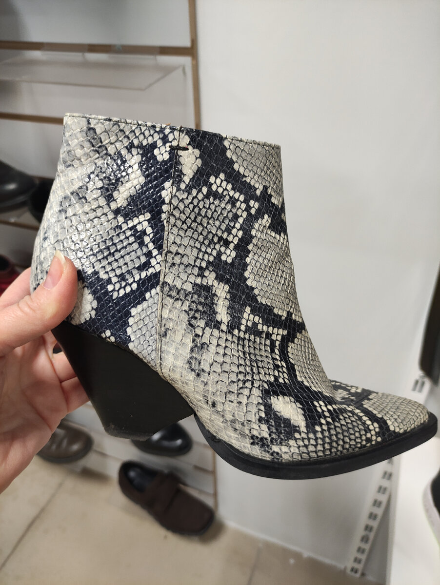 Роскошные казаки из натуральной кожи с питоновым принтом в черно-белом исполнении.