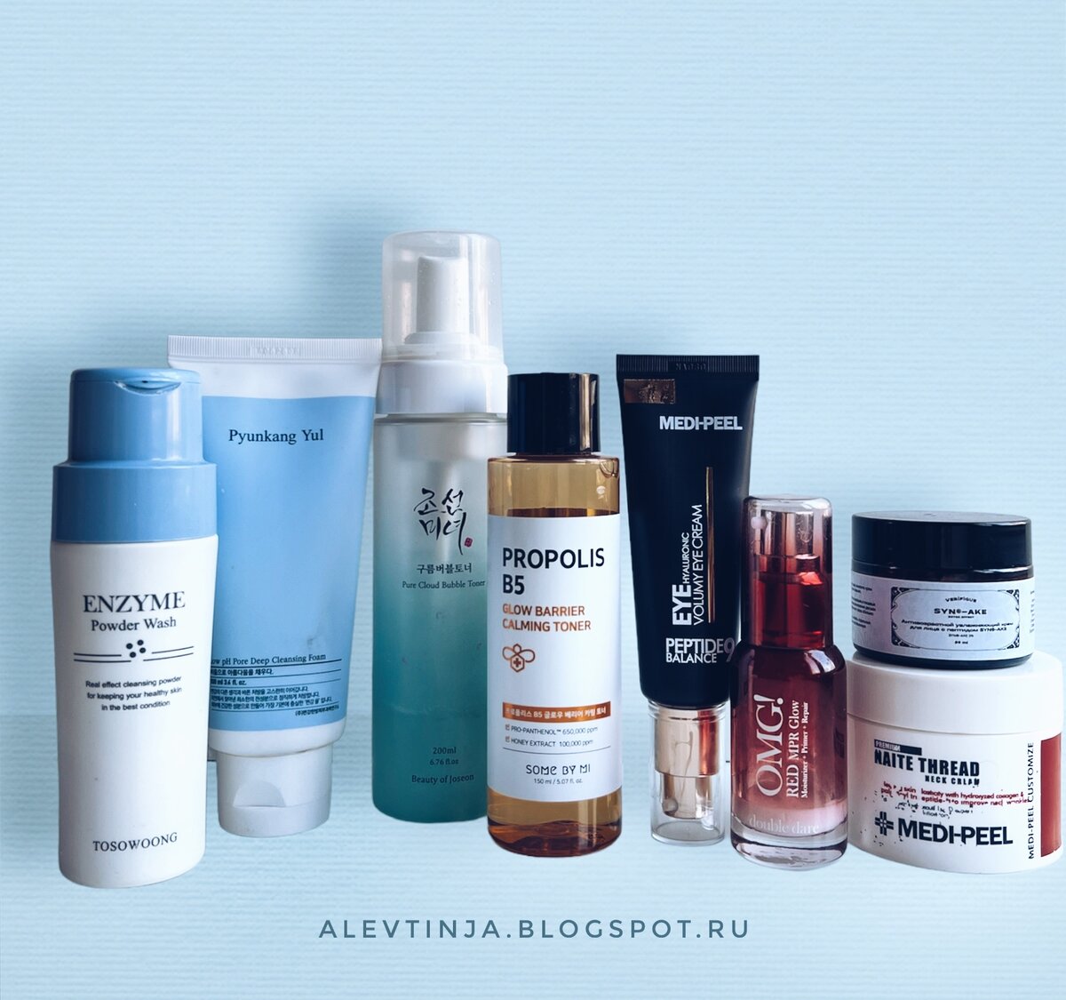 Решила вам показать свой актуальный дневной уход или "утреннюю рутину", как сейчас модно говорить. Пишу такие посты я крайне редко, поэтому сыворотку пропустила и не сфотографировала. Простите, переснимать мне лень :) Итак, ссылки буду давать на мои отзывы, а на те средства, о которых ещё не писала, ссылки будут на магазин, где их покупала. ОЧИЩЕНИЕ Утром я умываюсь прекрасной пенкой с низким уровнем pH от Pyunkang Yul, которая абсолютно не сушит кожу. Один - два раза в неделю применяю энзимную пудру от Tosowoong для глубокой очистки пор и удаления отмерших клеток. ТОНИЗИРОВАНИЕ Дальше наношу руками тоник с прополисом и провитамином В5 от Some By Mi,он отлично увлажняет и смягчает кожу. Иногда пользуюсь пузырьковым тоником Pure Cloud, Beauty of Joseon, который покупала на iHerb, но его сняли с продажи, у нас его найти не смогла, отзыва поэтому нет. СЫВОРОТКИ На всё лицо, включая область под глазами наношу пептидную сыворотку SYN-AKE 3 % от VERIFIQUE, о которой рассказывала вчера.