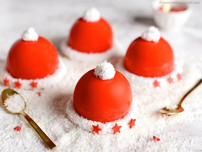 Выньте замороженные заготовки из формочек и разложите их на решетке, которая уложена поверх противня с бортиками. Полейте полусферы красной глазурью (при температуре 35° С). Слегка постучите противнем по рабочей поверхности, чтобы стекли излишки глазури.