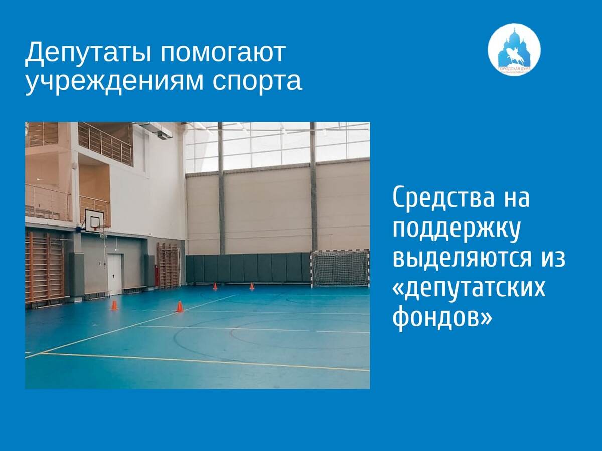 Парламентарии, планируя, куда пойдут деньги так называемых «депутатских фондов» с вниманием относятся к запросам социальных учреждений. Основные вложения, конечно, в образование и здравоохранение, часть средств направляется на учреждения культуры и спорта. На поддержку спорта в этом году из «депутатских фондов» выделено около 750 тысяч рублей.