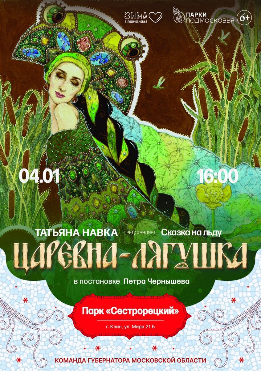 4 января в «Сестрорецком» покажут ледовый спектакль «Царевна-лягушка», постановщиком выступают Татьяна Навка и Петр Чернышев.